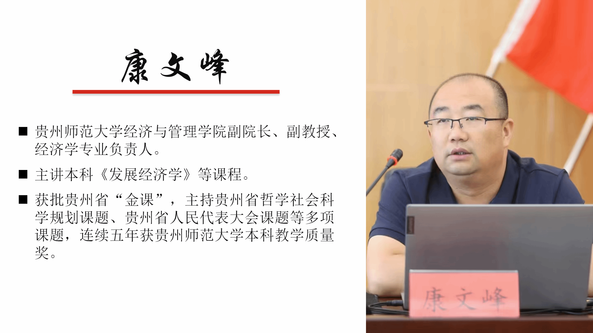 康文峰在《发展经济学》课程开设初期,就着力打造课程教学团队。他说:“《发展经济学》教学改革创新、教研成果形成离不开团队每一个成员的辛勤付出,实践教学、集体备课、课程录制等过程中都留下了他们的身影和汗水。”正是团队成员齐心协力、共同耕耘,助力《发展经济学》课程获批贵州省“金课”。