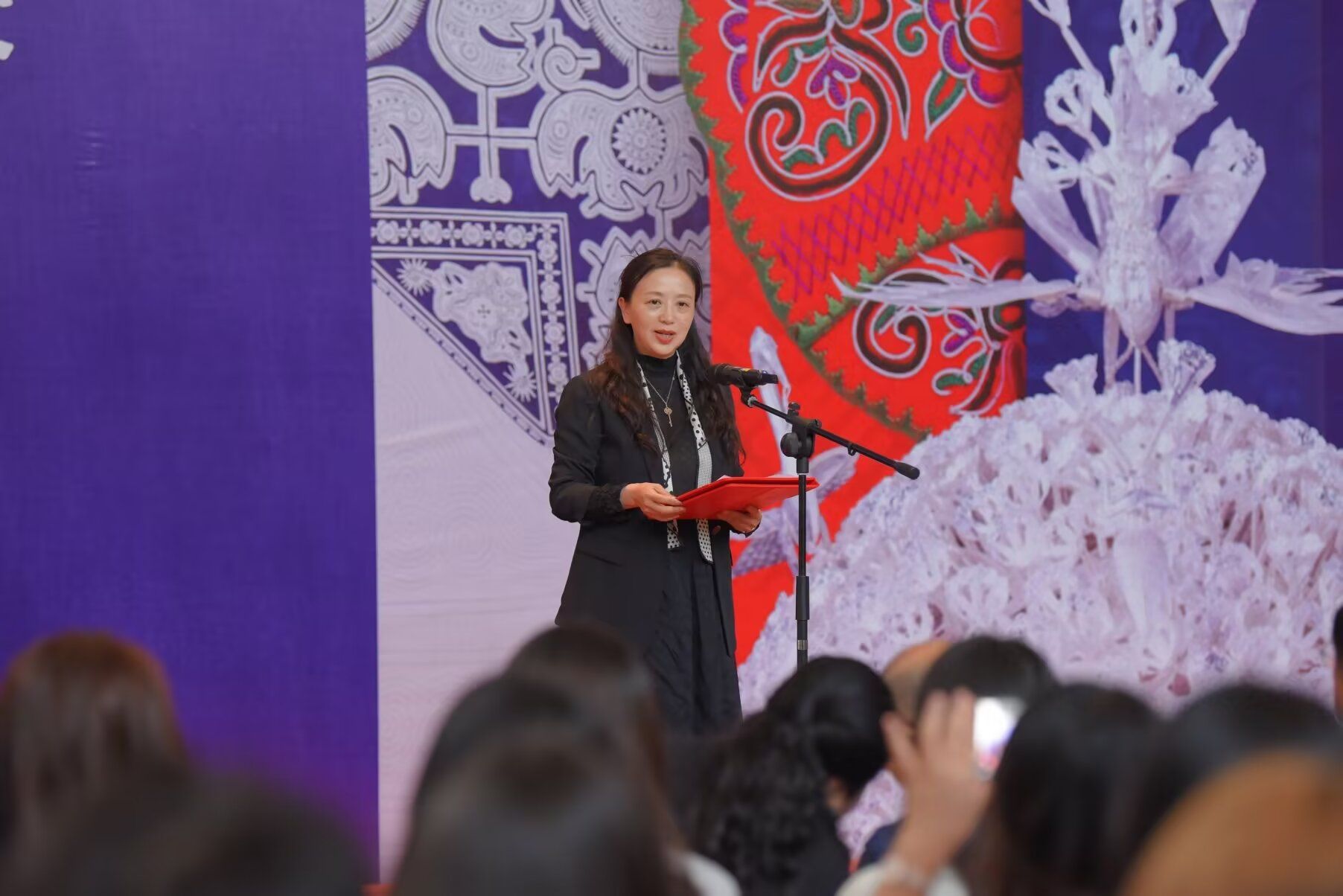 2024年,吴佳妮国家艺术基金传播交流推广项目立项后,她将238件精美绝伦、特色鲜明的贵州少数传统民族手工艺创新作品带到全国六大城市巡展,历时8个月、共计展出141天。在此期间,开展学术交流、直播展览等10余场活动,让4.3万观众感受传统民族文化的魅力。通过开设蜡染、刺绣体验等活动让观众切身体验贵州传统手工技艺的精妙绝伦。这些看得见的数据,摸得着的艺术,正是吴佳妮二十年如一日传播贵州优秀文化的生动写照。